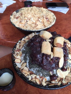 For the full review and more photos, head over to http://toroamtheworld.blogspot.com/2015/12/food-review-nunsongyee.htmlThe Bingsu craze has taken over Singapore by storm a few months back. But now, there are still Bingsu shops popping up, and I wonder how they are gonna fight the competition... Nunsongyee has been doing well though, as it has opened three branches within its first 10 months here.I went on 3 separate occasions, each time ordering something new. The below are all that I've tried so far.Injeolmi Bingsu ($12.90): This is kind of like their original flavour of Bingsu - chopped almonds with soy powder and rice cakes. The soy flavour was quite strong.Strawberry Bingsu ($15.90): You can't go wrong with strawberries, can you? This was satisfying - the strawberries sweet and the shaved milk soft and fluffy.Cheesecake Bingsu ($15.90): This is one of my favourite of the lot! It's served with real cheesecake cubes and finely crushed digestive biscuits. It's really like eating a cheesecake, because you've got the crumb base and the cheesecake itself, plus the additional shaved milk! The best part is that in the middle of the bowl they layer more digestive biscuits too, so fret not about finishing the toppings!Black Sesame Bingsu ($18.90): Recommended as one of their signatures, this Bingsu is served with a big scoop of red bean paste instead of the usual ice cream, plus almond flakes, black sesame powder and more rice cakes. I don't like black sesame so this naturally wasn't my favourite...Oreo Bingsu ($12.90): Once again, the finely-crushed Oreo bits are not only found at the top, but in between the soft, fluffy shaved ice too. Below is actually more milk (wondering if it's condensed) because it gets a bit sweeter at the bottom. So, once you've dug a path downwards, try to mix it with the top layer so it doesn't get too bland at the start.Choco Banana Bingsu ($13.90): It comes with two sticks of Pepero and a squeeze of caramel sauce and sliced almonds atop the ice cream. The interesting thing is that at the bottom, instead of the suspected condensed milk, there is something that tastes somewhat like Milo? It could be that the chocolate powder mixed with the milk below hence giving such a flavour haha.I love the Bingsus here as they are very soft and really melts in your mouth. It's nothing like the coarse ice from ice kachang and they are indeed fine like snow! Although there is condensed milk served at the side, I don't think it's necessary to pour it in because I'm comfortable with the sweetness level. Prices are a little on the high side (especially the $18.90 ones) so I recommend the ones at a lower price range, which are equally yummy and satisfying! Service was good as the Korean shop owners and assistants were friendly!…查看更多