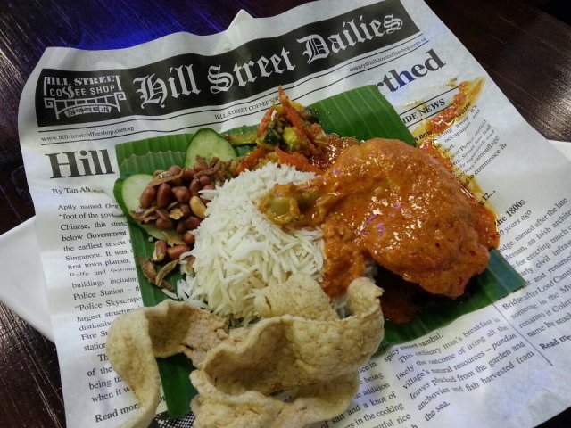 Came to explore Gardens by the Bay and decided to have lunch here. Read online that the Hokkien Mee is nice here, so we ordered that and other items. Hokkien Noodle - quite a big portion of noodles on a piece of banana leaf. The taste is slightly better than average. The Chilli that they gave with the noodles is really not worth any mention. Chicken Rice - the meat was nice but not many pieces in total. The rice had a lot of ginger cooked in it and my girl didn't really appreciate it. Signature Nasi Lemak - flavourful rice cooked in coconut and the accompanying fried chicken leg was well-seasoned and fried. Chilli is not bad for this dish. Flavour but no bite. Curry Chicken with Steamed Bread - 4 square slices of traditional bread in a steamer with a bowl of chicken curry. The bread is ordinary and a bit mushy but served in a drama manner only. Heh. Average tasting and not spicy enough. Not likely to come here for more as the food here was expensive and not good enough to worth the buck. …查看更多