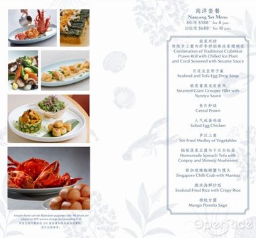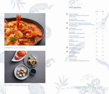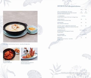 辣椒螃蟹 / 貴妃蟹 / 秘製奶皇汁龍蝦 / 龍蝦燜伊麵 / 香酥全鴨 / 秘製松茸菇干貝菠菜豆腐