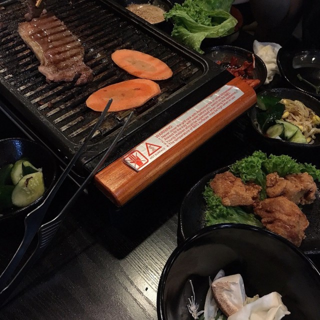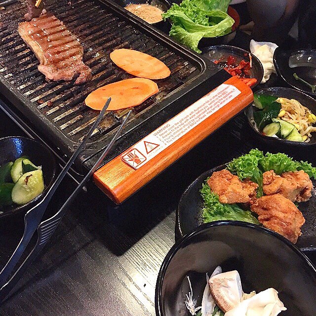 Bought a Groupon deal to enjoy the buffet. The deal consists of a side bar of vegetables and dips and unlimited plates of pork slices and beef slabs. I really liked the cucumber with their Japanese sesame dip. I enjoy creating my own dip with choice of Chilli padi, Jap sesame sauce, raw minced garlic, spring onions and sesame seeds. As for the meats, the beef slabs and pork slices come unseasoned. So it's up to you if you want to season before or after. I would say that the beef slices were nice and thick so if you like your beef a little raw in the middle, you can still achieve that with watched grilling. The pork slices are thin so they char very quickly so gotta watch too. The food items are generally quite fresh and presentation is good. The grilling pan is electricity heated so the cooking is quite clean. And the ventilation is non-Existence so you do smell like grilled meat yourself after the meal so please don't even think of going out somewhere glam after please!It's very value-for-money with the Groupon deal and I'll bring my family the next time round.…查看更多
