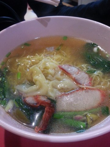 For $2.50, you can get a bowl of heartening warm soupy wanton noodles. The egg noodles were the type that I enjoy and though it was cheap, they did not skimp on the ingredients and the veggies. The wantons look to be wrapped in store and seemed very fresh when consumed. It seems like a lot of love and energy was put in the soup as it was a broth seems to have been boiled from little fishes. :)There always seems to be a line at this venue, but if you consider quality and quantity of the food that you get with the price, it's really a steal--and a hearty one too.…查看更多