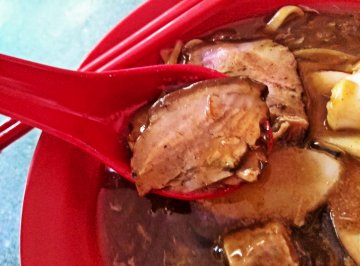 Visit http://www.umakemehungry.com/2014/06/guang-tai.htmlI came across Guang Tai during one of the dinners in Jurong area on a Sunday evening. It was rather quiet as most of the stalls were closed for the day or not operating on a Sunday. Guang Tai signboard was a little different from the rest with his red and blue lightings.Guang Tai bowl of Lor Mee was fully filled almost to the top with its gravy and ingredients with the usuer ingredients like Ngoh Hiong, Fish cakes, braised belly meats. It was a pleasant surprise to have tasted such a special bowl of Lor Mee in Jurong as their "Lor Chap" (gravy) was infused with herbs. Not only that the braised meats were nicely prepared and flavourful.All along I would have thought that Lor Mee in Hawker Centre was pretty ordinary, with salty dark brown gravy, having not much of braised taste but this bowl from Guang Tai had given me a different view instead.…查看更多