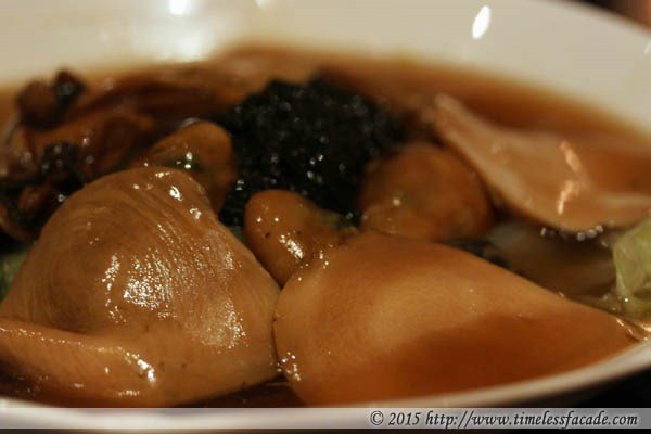 It's been a while since our last visit to Imperial Treasure Teochew and since then, so much has changed. For starters, they relocated from Ngee Ann City to Ion Orchard and included the word "Fine" in their name. Oh and they recently garnered a Michelin star. Exciting times. Interior The place is certainly more upclass now and gone are the days of the rather cramp-ish interior with haphazard seating arrangements. Instead tall glass ceilings allow for tons of natural light and coupled with lots of wood, make for a more relaxing and refined dining environment. Do note that if you sit by the windows during the day, be prepared to soak in some heat; a little hot but still bearable. Double Boiled Fish Maw Soup with Shark Cartilage This came across as a little starchy and rather sweet. Not quite a fan honestly and rather pricey at $30++ for such a small bowl. The Cantonese restaurants definitely do this better. Doubled Boiled Pig's Stomach Soup with Salted Vegetables & Peppercorns The soup was a tad too salty from the salted vegetables but I liked the peppery goodness of the peppercorns. Decent soup overall but I can get a better (and cheaper) rendition from one of the Teochew braised duck stalls that I usually patronise. Chee Cheong Fun Just for the kick of having some dim sum - a rather average rendition with the skin less than silky and a lacklustre char siew filling. Three Kinds of Marinated Combination in Teochew Style One of the hallmarks of Teochew cuisine, braised meat. We went with duck, pork belly and intestines and it was seriously underwhelming. The duck was thinly sliced and didn't come across as too tough but the gravy was a tad too sweet for my liking. Though the pig intestines were well cleaned, they lacked the crunchiness that I liked and came across as limp. Not to mention the pork belly with its >50% fat to meat ratio that honestly didn't go well with the sauce. The sole saving grace? Silky smooth beancurd slices hidden beneath. Apparently this is the Hong Kong style Teochew braise with its lighter flavours but I've had much better Teochew braise in Hong Kong. ie. Chan Kan Kee or Hung's Delicacies (which I make a point to patronise whenever I depart/transit HKIA). Deep Fried Cod Fillet with Sauce I had meant to order the pan fried version but made a mistake. Thankfully it turned out pretty good; crisp on the outside with sweet, flaky flesh on the inside. Ladled with mildly savoury sauce with lots of spring onions. Delicious. Sauteed Prawn with Egg White in Italian White Truffle Oil I usually prefer the scallop version but apparently prawns have substituted scallops for good (still can't quite accept that fact). The singular prawn was quite sizable and crunchy and of course the white truffle oil gave the whole dish a rather heady (and amazing) aroma. Braised Spinach Beancurd with Assorted Mushrooms Now I've rather biased towards beancurd and it was quite delicious - crisp on the outside while soft and eggy on the inside. Topped with lots of mushrooms and sitting on a bed of spinach. Definitely my kind of dish. Sauteed String Bean & Minced Meat with Preserved Black Olives The string bean came across as a little too oily but at least it retained its crunchiness without coming across as overly raw. Average dish at best. Teochew Fried Fish Noodles Stir fried with beansprouts, chives and egg, the fish noodles had a nice springy texture to it but was way too oily for my liking. It was also a tad lacking in wok hei. Sweetened Mashed Taro with Ginkgo And finally, another ubiquitous Teochew dish, the humble but extremely time consuming to make Orh Nee. It looked dry and unappetising on the outside but was actually smooth, fragrant and moist without being too sweet. A great ending to our otherwise underwhelming meal. Bill With a $100 discount, lunch for the 4 of us came to about $232 (~$339 without discount), which isn't quite worth the money in my humble opinion. Food overall was acceptable but some dishes came across as too oily. Service was good but seemed to be shorthanded at times, especially when the restaurant was at full capacity. To be honest, even though I'm quite a fan of the Imperial Treasure group (note the number of times I've been to the Cantonese outlet at Crowne Plaza), I fail to understand how this particular outlet is able to achieve 1 Michelin Star.Final Verdict:Ambience: 7.5/10Service: 7/10 (would have given 7.5 if not for the fact that they seemed shorthanded at times)Food: 6.5/10 (7.5/10 for the orh nee, beancurd and cod fillet)Value for money: 6/10Overall: 6.75/10Address: ION Orchard, #03-05Contact: 6736 2118Opening Hours:Monday to FridayLunch: 11.30am to 3.00pmDinner: 6.00pm to 11.00pmSaturdayLunch: 11.00am to 3.00pmDinner: 6.00pm to 11.00pmSunday & PHLunch: 10.30am to 3.00pmDinner: 6.00pm to 11.00pmWebsite: http://www.imperialtreasure.com/restaurant/Imperial%20Treasure%20Fine%20Teochew%20Cuisine-4…查看更多