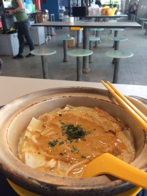 Laksa stalls in Singapore are getting less and less. This one is very famous and still exist in food centre and attract people who appreciates it's great tastes.After queuing for 20 mins I got my clay pot of laksa and I always wonder why it's with clay pot. My interpretation is the chef's insist of his version of best combination of temperature and taste which he would like to bring to his customers. :)The soup is not thick but doesn't mean its taste is thin. It's so complicated when the clear soup is mixed with its gravy. The spiciness give very good stimulation of your taste buds but it didn't cover the taste of the gravy and the noodles. You feel like having the freshness of crab toes in the gravy though I dunno whether they have it there, and the mix of shredded chicken give a different texture to other laksa stalls.Definitely its among the best laksas in town!…查看更多