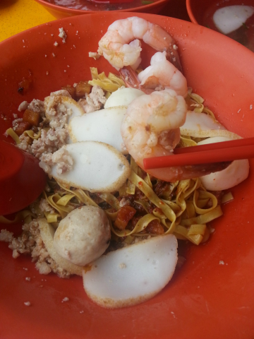 FoodI purposely travel from west to east (bedok rd) for Jalan Tua Kong Bah Chor Mee. I have tried the main so many times and my friend somehow persuaded me that the branch has the same taste as the main. The branch is located at one of the Coffee House called Kwek Seng Huat Eating House along the stretch of muslim food stalls below the privatized Hawker Centre.My friend and I ordered the Bah Chor Mee (BCM) at $4.50 each. Without fail, we have waited for about half hour before our breakfast comes. My portion comes with 3 prawns, fishball, meatballs and fishcake. Pork lards are found in the mee and the mee is totally out of my expectation - its simply too spicy for me! I was sweating because of the spiciness of the chilli mee pok. The chilli had took my tastebuds away and I will not visit this branch again!My soup has a slice of fishcake. Ha! My friend mentioned that it tastes the same, however I dont think so. It's either my taste buds had gone haywire with all the chilli... or my friend's has wrong judgement. Soup is not as sweet tasting as the main stall.ServiceService waiting time is horrible. Well, they are famous for their waiting time. It's just very common. AmbienceHot surroundings even though we had outdoors seat. THe smoke from the roasted delights are generating heat and after the meal my clothing are reeked of BBQ / Smoked Smell. Awwww..PriceI understand that the main shop has a difference of $0.30 for every portion. Well, somehow I find it overprice!Recommendations / TipsI'm quite disappointed by the taste of the chilli empowering the whole meal and for the fact that I drove all the way there! I will not visit the branch stall again! If you are quite hungry, i suggest that you dont eat this, to find seats, time is taken and the time to wait for the food takes quite long too.…查看更多