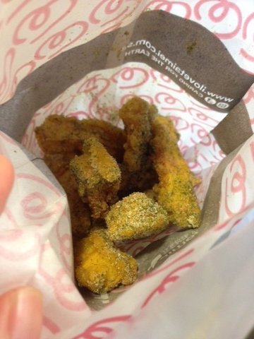 I usually order milk tea with a snack here but this time round, I tried their hazelnut iced milk tea. Total cost was $8.80 (2 milk teas and a snack). I had the sugar level at 25% and it was just nice for me. The hazelnut flavour was present and was blended in well with the milk tea although I felt that the milktea itself wasn't very fragrant. The seaweed tofu fries were yummy. The batter was crispy and it was heavily seasoned with the seaweed flavour. It would be better if the tofu was thicker as the batter was too thick for the tofu in it. I was quite thirsty after that though but they were tasty!…查看更多
