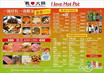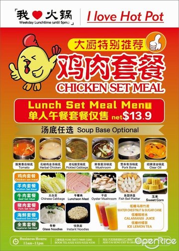 我爱火锅 (新加坡) 網址: https://s.openrice.com/eKbSB01ody1W0 地址: Grantral Mall, 601 MacPherson Road #01-64., Macpherson, Singapore 電話: +65 6322 4336