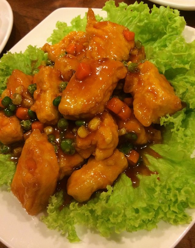 Having a usual dinner at Woodlands area with friend, we opted for Chinese cookery. There was no much peoples hanging around during night time, service was friendly prompt. Menu was extensive enough, photo inside was attractive with brief intro given. Humble-looking restaurant at coffee shop yet it presented high-class restaurant dishes, food was appetizing in presence while taste even better.It was a very famous dish mimicking Sweet and Sour Pork, intentionally vegetarian version. Cut into decent sizes, each tofu cube was pan-fried until perfection. Not too oily or too hard, texture was firmly soft. Evenly coated, crisp layer was delighting. Generous gravy poured on top, taste was well-balanced of tanginess and little sourness.My first time to try out this combination, appearance was shinny colourful and mouthwatering. Slight fiery spicy, eggplant was silky moist in texture. Thick pieces in golden brown with medium-high heat, potatoes were well-fried, classic taste with garlic fragrant. Best eaten with a bowl of rice, saltiness was all right and served warm.Cracking and blending it, scrambled egg was fluffy tender. Seafood such as shrimps and squids were mixed along, authentic homely dish with petite burnt surface. Easy and straightforward taste, yet it was wonderfully impressed me. Went through deep-fried method, it was surprisingly without greasiness.Mushroom wise, the dish was nothing fantastic. I must admit I don’t really fancy about it, plate was full of purely natural mushrooms. Starchy gravy was flavourful, thick with soy sauce aromatic. Portion was rather huge for two person, quite worthwhile to order. Overall, we felt satisfied to dine at the place. Price was inexpensive with great food quality, not bad experience.…查看更多