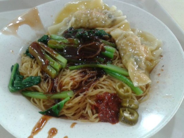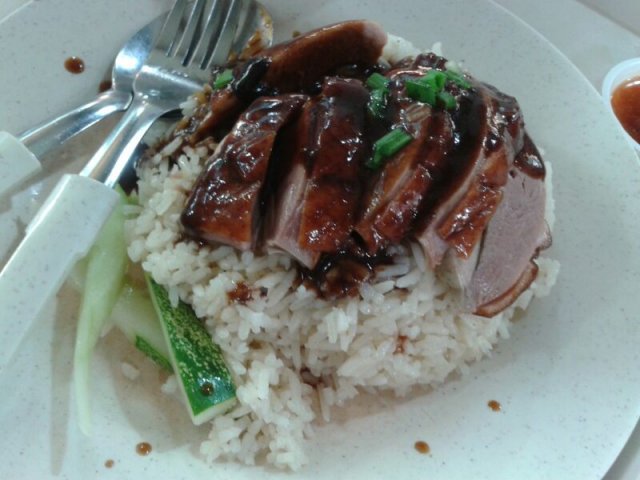 Went to our usual place for lunch with a colleague and I love the roasted delight from this stall, especially the roasted chicken rice, roasted duck and noodles. I've tried the salted veggie duck soup before... the soup is considered cheap and good for a mere $2.50. I don't mind eating from the same stall again even thought i ate their noodles the day before...Who cares as I was having strong crave for roasted duck. Lolz...$3.00 for a plate of roasted duck rice is considered reasonable. Roasted duck: Crispy fat duck but not oily...well roasted with a nice shade of shiny brown. Love the salty spices rubbed on the underneath layer of duck.$3.00 for a plate of dumpling noodles. Wow... sound reasonable ya?! A plate of noodles come with some veggie and 3 huge boiled dumplings with lots of shrimps and crunchy black fungus. Every bite is filled with sweetness of the prawns and meat. Yummy! …查看更多