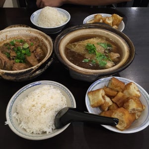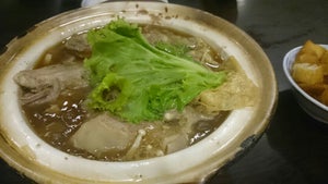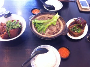 Just to put it out there that this Bak Kut Teh is the herbal type. So this is the Malacca herbal type that is very nice. Our family of 4 had:* one pot of Bak Kut Teh for 2 pax with enoki mushroom and pieces of tau Kee - very nice soup though I found the pork ribs a tad tough* sesame ginger chicken - we love the sauce and my girls ate almost all the chicken pieces, leaving us to taste the yummy dish from sucking the chicken bones only. So I did the next best thing which is to put the pork ribs inside the sauce to glaze it. Yummy!* braised pig's small intestines - tasty pieces with no funny piggy smell* crispy tau Kee - this is a wonderful dish with layers crispy tau Kee stacked together and glazed with their braised sauce. I've eaten at many Bak Kut Teh places and this is the first place I've seen this done this way! Champion! I wanted to order another but had to stop myself* broccoli and mushrooms - simple dish of blanched broccoli and seasoned with sesame oil and soy sauce. Approved by my girls so you can trust. We had all these with the must-have braised peanuts and you tiao, they were average but nice enough.The meal is essentially very nice and the soup is refillable so that's great! Another great thing is the price tag. The whole meal costed us about $50 which is really value-for-money for a BKT meal. Will return for more!!!…查看更多