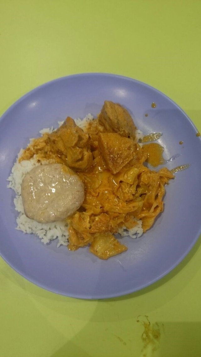 Lunch costs $3.80 and was worth it. I had rice with meat cake, curry chicken, and curry vegetables. The meat cake was made with chopped meat and was rather unique in taste. The curry was also rich and fragrant. The curry chicken was tender and the curry vegetables were soft and had absorbed the essence of the curry making them yummy. It was a satisfying lunch!…查看更多