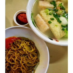 I was wandering around the marine parade central hawker center to find something for lunch and this stall's offerings reminded me of the koo Kee Yong tau foo at chinatown. So I decided to give it a try. The portion was reasonable. But I think I would need more noodles! They were quite generous with the minced pork.The noodles were very springy and chewy! Just the way I like them, with the red sweet sauce and the seasoned minced pork. The noodles were at their optimum taste! I enjoyed the noodles more than the YTF ingredients! This green coloured looking fish cake tasted like any normal fish cake but there were prawn chunks in a rectangular fish cake that tasted pretty good. The soup was a bit too flavourful for me which resulted in me looking for a drink to quench my thirst. This would normally cost $3.80 but being that it is the 3rd day of the lunar new year, the prices were increased to $4.80. The shop had a sign printed in mandarin on the signboard but I couldn't read it. Honestly, for almost $5, I would've considered Something else for lunch. But nonetheless, an interesting find in marina parade central! :)…Read More