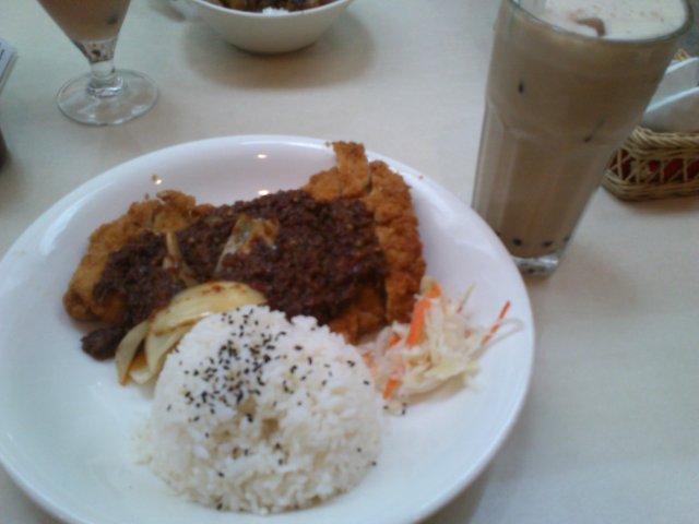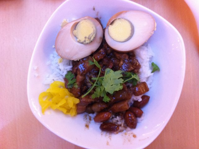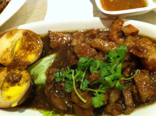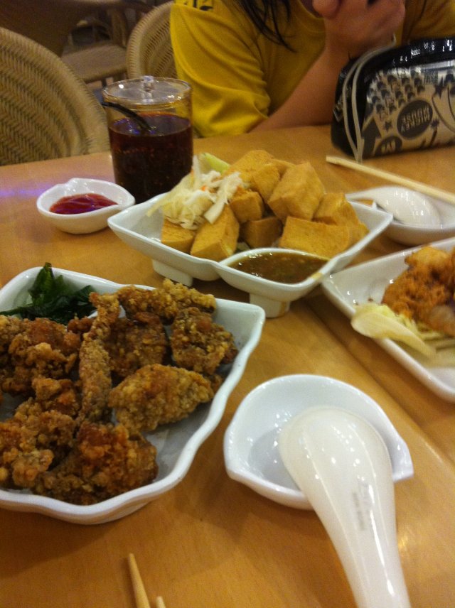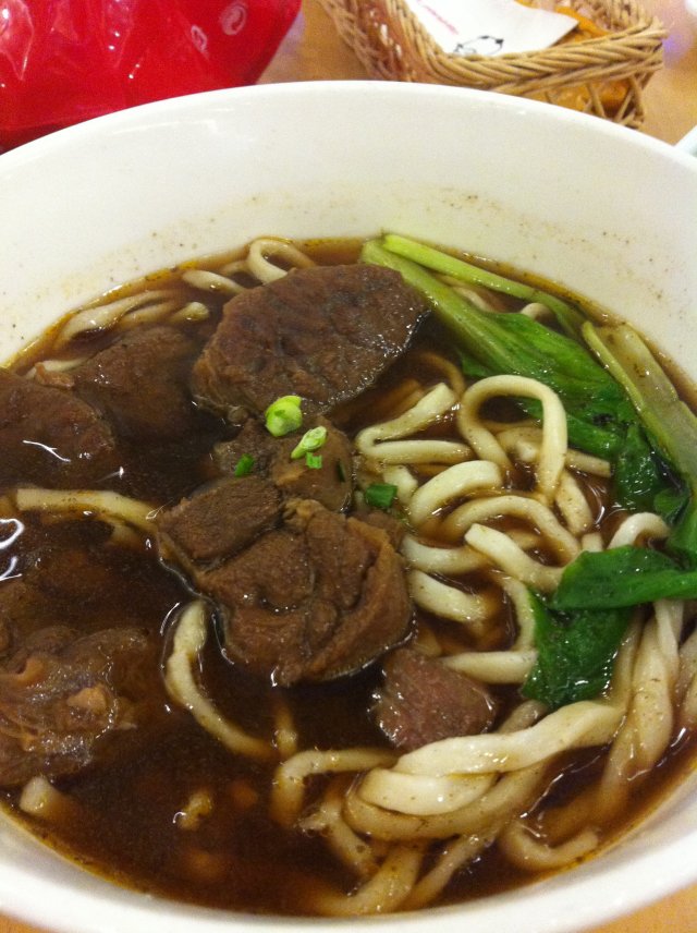 Though the restaurant doesn't really advertise that the cuisine is Taiwanese so much, it's rather authentic. We decided that it'd be more value to order from the menu.This dish was a slight disappointment as it didn't have the flavor that I was looking for.The fried chicken pieces were hot when they came out and had fried basil leaves too. However, the pepper/salt combination that usually accompanies it wasn't so apparent.The highlight of the meal really was the Stewed Pork over Rice and the Beef Noodles.The Stewed Pork over rice had pretty much the texture and taste that you'd normally eat at the local food stalls in Taiwan--of course, at a more hefty price.The Beef Noodles' soup was pretty much on the dot as well, however, the noodle could have been more al dente and more similar to the traditional beef noodles. It is, however, rather difficult to get the correct taste for the beef soup so I think it's a good job already. Beef pieces could have been a bit more tender and chewy though as they were rather hard and not as juicy.Friend ordered the jasmine milk tea and I had the guava float which was pretty good. Could have opted for no Konnyaku jelly though as it reminded me of the tadpoles that Singapore desserts sometime have.…查看更多