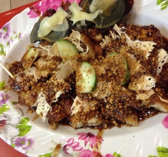 FoodThis is one of my favourite rojak stalls since 12 years ago when Taman Jurong Market was located else where. This particular stall sells only Rojak and nothing else. Specialised!We can order a plate of rojak at $2.50, $3 , $4 or $5 depending on individual preference. I have order a $3 portion with 2 tau pork with fillings ($0.80 each) and 1 century egg. ($1.20 each), sums up to $5.80. What I like most from this rojak is that century eggs are fresh and each time we ordered, Tau pok and you tiao are all toasted before serving the customers. Simply love the century egg though it is not served chill. Tender and bouncy while biting. Comes with a few slices of seasoned ginger, it takes all "Xin wei" away.Each tau pok will be cut into 4 portions. I have shown a cross section of a quarter. It fills with bean sprouts and vegetables. Bean sprouts are fresh and not too wet nor dry after heated over the fire. Crunchy feeling, with a big of the rojak sauce, its savoury.ServiceSelf service. Requires some waiting time as some of the ingredients need to be toasted and quite a number of orders are take aways.AmbienceAmple of seats around in the night as most of the stalls are closed. PriceThe standard pricing for a plate of rojak. For additional cost, it depends on the extra items one adds.Recommendation / Tips(1) add the tau pok with fillings.(2) Muslims friend can eat this too.…查看更多