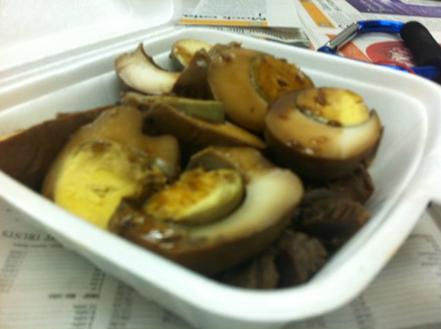 When my colleagues suggested heading over to a Duck Rice Place along South Buona Vista Road, I was still oblivious to the fact that we were patronising the famous Lim Seng Lee Duck Rice Eating House! It made history by being one of the first in Singapore to serve boneless duck in 1968 and is particularly well-known for its Teochew-style Braised Duck.This is a popular lunch joint for the working crowd in the western region of Singapore. And is even more so now after the recent media hype of it closing down for good after 20th June 2013! If you are driving over, alight your passengers first to get a table while you try to get your vehicle parked. Be prepared to wait for around 10 - 15 minutes just to get a table.We ordered half a duck portion ($20) for 4 of us. The legendary boneless braised duck was served minutes later coated with a layer of soy sauce based gravy flavoured with cinnamon and other herbs and spices. The thinly sliced duck meat was amazingly tender and goes really well with the accompanying sweet vinegar chilli. Convenience and ease of accessing the duck meat was also a major plus point.We also ordered braised eggs on the side. They were a little too dry and hard for my liking.I am not exactly sure if this was Sambal Kang Kong ($6) or just Kang Kong. I could hardly taste any sambal in them. You can definitely give this a miss.I never understand how Tofu ($6) go hand in hand with braised duck. The tofu looked and tasted bland. Please save the $6 for a nice dessert after the meal.It is sad to know that Founder Lim Ah Too, 67, and his wife will be ceasing their operations due to poor health and their children are not willing to take over the business. While the side dishes are not amazing, I still recommend readers to pop by before 20th June 2013 for their boneless Teochew-style Braised Duck before it fades into history.