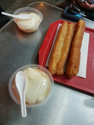 What better for supper than some smooth and silky beancurd?Maybe a cup of cold soybean milk? Or perhaps some fried doughsticks?Well, make that all of the above.The soya beancurd we ordered was with soymilk. Most days I'd rather have it just with sugar syrup but my girlfriend wanted soymilk.It was a little of an overkill seeing as how we also had a cup of cold soybean milk.The doughsticks weren't served hot. I was terribly disappointed. :( Just as well, it helped me skip the oily mess.Otherwise though, loved my beancurd and soymilk.…查看更多