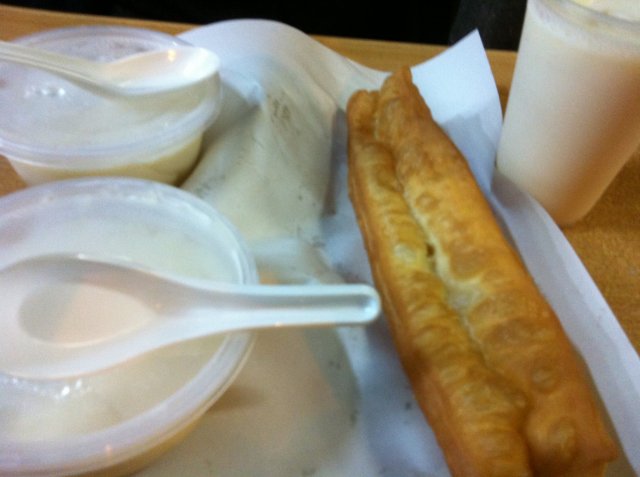 This is a good place for supper if you can find seats. Despite having seats on two stories and in the alley, the place is still bustling with people. Ordered few pieces of you tiao and beancurd and a cup of soya bean milk. The beancurd is not really good as I've tried better ones before. The soya bean milk was good, especially in a warm weather. All of the dishes gave a very healthy feeling as the you tiao wasn't too oily despite being deep fried. And I think they regularly change the oil coz it tasted good! :) The soya bean milk and the beancurd wasn't too sweet either. Each costs $1, which is considered cheap in the city! The you tiao also costs $1 per piece but it tastes so good that you won't mind eating more!! :) …查看更多