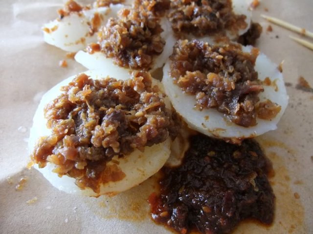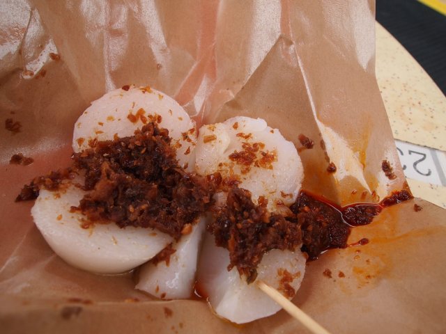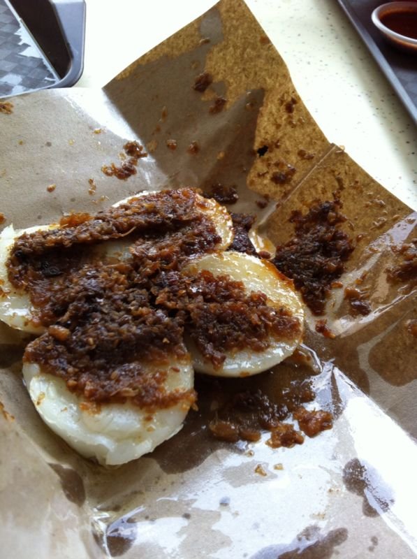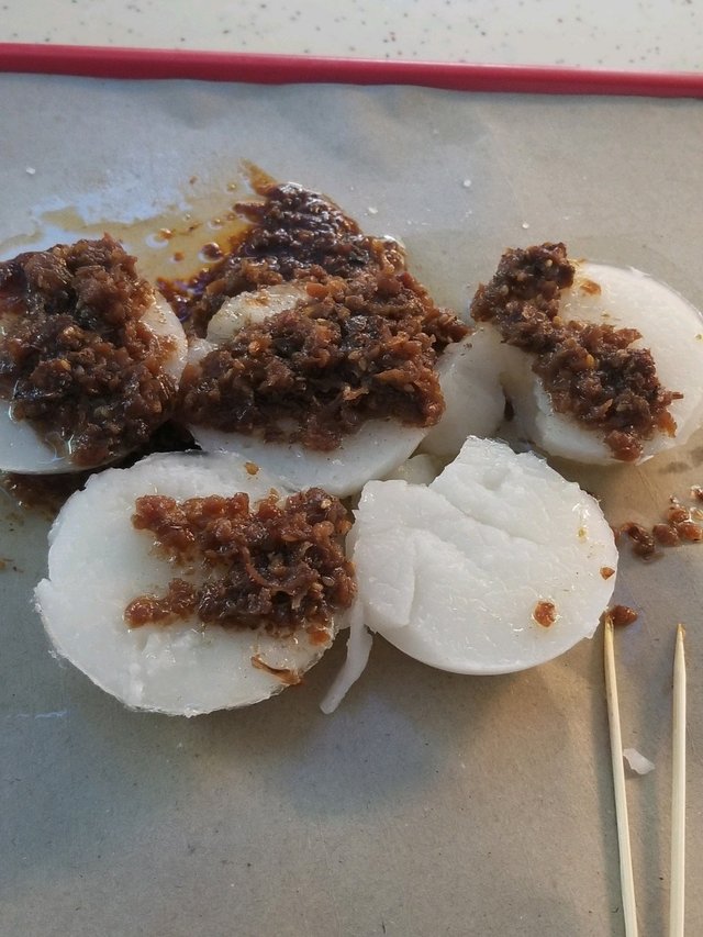 🌷水粿🌷:香港好似真係冇。。好得意呀。。佢應該就好似我哋朝早食腸粉一樣的小食。最少要買五個,幾驚食唔晒呀。 首先沒有多餘食具。。就是把水粿放在紙上。。唔用碟直接放係盤上。。on the tray 呀😓😲..係我少見多怪啫。。好欣賞👍..講返水粿,質感有d 似蒸蘿蔔糕,圓圓的好可愛💗。 個醬唔係甜醬咁間單,甜甜少少醬油香。。精華是裡面有碎碎炒香咗嘅梅菜。。風味超讚👍👍🙀🙀😍😍。最後。。記住用🥄食。。我就是沒有😅😅。…查看更多