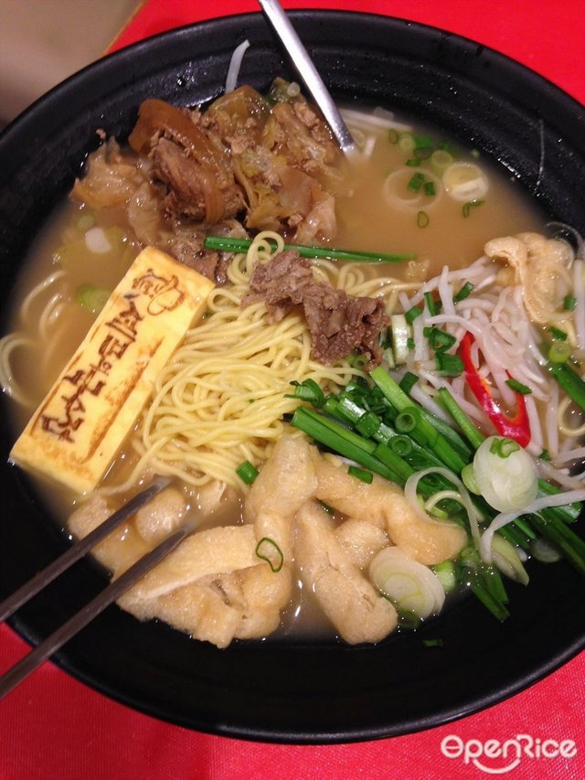 I mentioned in another of my review that the same brand in the shrimp noodle shop (Le Shrimp Noodle) is very good. So I start to get attention to this brand. With such expectation in mind, I can't say how disappointed we were. First, the essence of beef noodle (which is a traditional food from Taiwan) is the SOUP. And sorry, the soup here is no taste. This was a sharp contrast to the good taste shrimp soup in their another brand.Moreover very typically, Taiwanese noodle should come with some preserved sour vegetable. There was none here, which tells me this is not a very authentic Taiwanese style shop.…查看更多