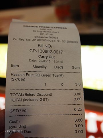 It was a super hot day and i just bought lunch at AMK hub so before i take the bus, i saw Orange Tea in front of me and i have never try it before so got one to try. Not in the mood for any toppings such as pearls, i chose the Orange Green Tea. It's very refreshing and thirst quenching indeed! It's a simple combination which i may even want to try at home. Just two days ago, i went back to try another beverage and this time i opt for their signature drink - Passion Fruit QQ! It has toppings like pearls & nata de coco and it's refreshing with the passion fruit taste. Quite shiok to enjoy it together with the toppings.…查看更多