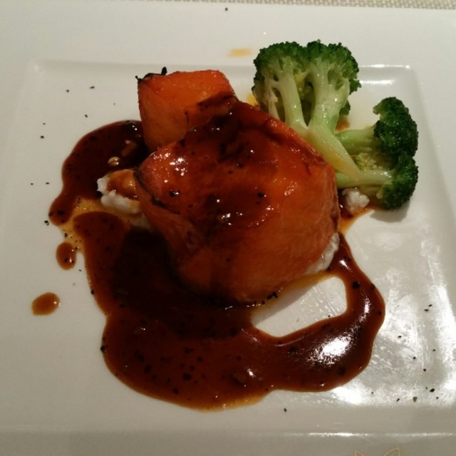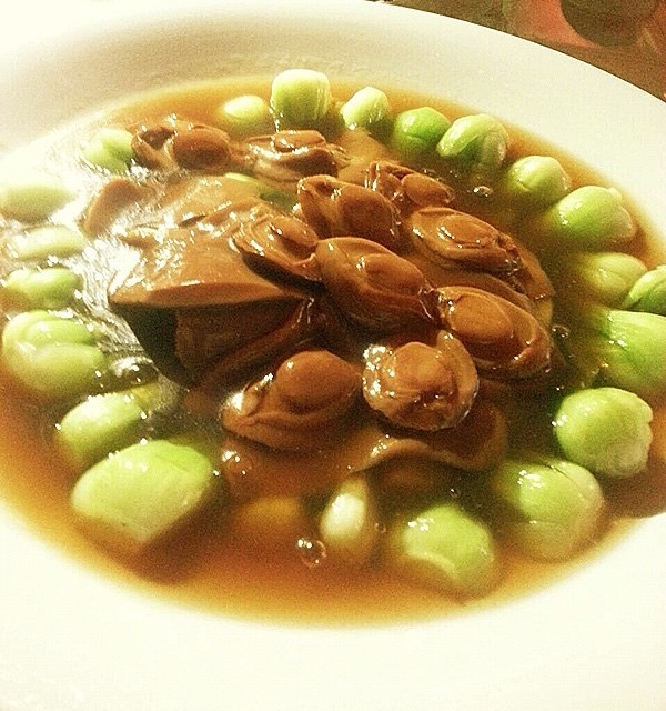 Braised baby abalone, Bai ling mushroom & seasonal vegetables