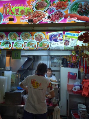 For full review:http://uniquelious.blogspot.sg/2014/01/xin-mei-congee-ang-mo-kio.html"Why sell congee?" "Because everyone eat it"This is the eye catching line when you pass by this stall in Ang Mo Kio Market and food centre. The answer given by the owner is so true. All kind of people eat congee. This is very true just by seeing the queue during peak hour. Queuing time take about 10 mins just to take order. They sell all sort of congee, there is selection such as pork, pig intestine, mixed pork, sliced fish, porkball, prawn, etc etc. Chinese version of sashimi. Mixture of sliced fish, lime, chili padis, sliced ginger and cucumber. The raw fish is fresh and together with other ingredients really taste refreshing and sweet.Porridge and freshly fried You Tiao. You can choose to cut your You Tiao or just eat the whole stick. You can choose to add an egg but it will be an extra cost.Consist of sliced pork meat, pig intestine, pig liver and pork ball. Pig intestine is clean and does not have any disgusting taste. Very nice to eat.Sliced pork which is so tender to chew. The meat goes well with the porridge.Long queue at nightThe porridge is very smooth and easy to eat. The ingredient such as meat is fresh, they do not have any stinky smell or taste. Fried dough or You Tiao is very crispy and fresh. I wanted to order another but scare fat.Well, it a hawker center, so do not expect very clean and nice environment.Definitely will queue and order again.…查看更多
