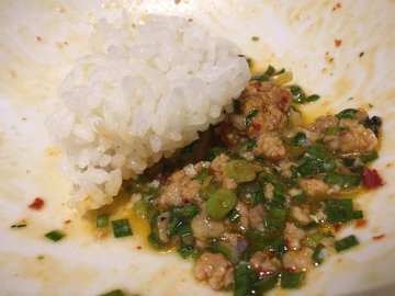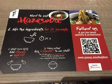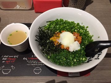 It was a tiny outlet located at Orchid Hotel with a service staff and 2 kitchen staffs. It was well known for its dry style of ramen. The place was not crowded, comparing to its crowded neighbours during dinner time. Only cash was accepted for payment. There was ice tea on the table to help yourself to. Sitting at the counter, one could easily see how the cook prepare the food.Mazesoba Nagoya style (S$12.80++)Dry noodle with spicy minced pork, soft boiled egg, seaweed, and some vegetablesThere was a note pasted on the table, with instructions on how to eat the noodle.1) Mix the ingredients for 20 seconds2) Want more kick? Add vinegar or chilli oil!3) Finish eating? Ask "OiMESHI!" to staff! The staff would give a small portion of rice to mix with the remaining sauce!The noodle was served with a small cup of soup. The soup was peppery in taste and reminded one of bak kut teh. The noodle was addictive and slightly spicy with a slight QQ texture. Better than most bak chor mee. Mixing the remaining sauce with the plain rice, it was delicious too.…查看更多