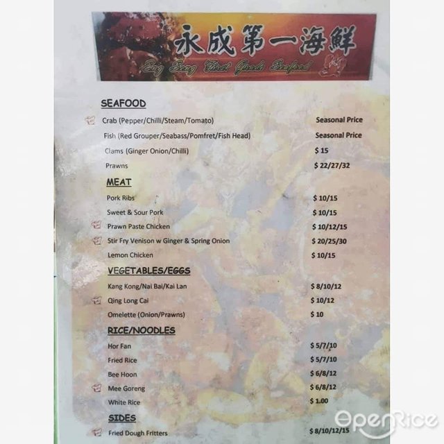 永成餐室 (新加坡) 網址: https://s.openrice.com/eKbSB01CLS000 地址: 247/249 Joo Chiat Place, Joo Chiat, Singapore 電話: +65 8611 2247