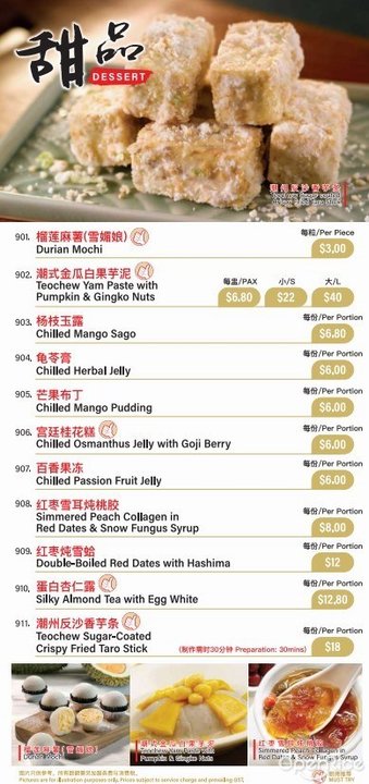 Swatow Restaurant is quite a popular with the older generation and it is well known for its teochew cuisine. On friday night, the restaurant also offers teochew opera show, which is quite rare to see these days. The restaurant is located opposite the library, on top of the supermarket. Although the building is quite old, there is a small lift to the restaurant which can fit 2 persons in it. This is great as a lot of people coming to this restaurant are quite old.The restaurant is decorated in quite the old school and no frill way, with traditional opera clothes at the entrance. As the restaurant is quite popular, it is best to make reservation before coming.Today the family is coming here for the hi-tea buffet which costs $22.80++ for an adult and $16.80++ for a child. Although the family have made reservation for hi-tea buffet which usually occurs from 3pm to 5pm, we have a rude shock when the staff tells us the last order for the buffet is 3.30pm. It seems that there is an event tonight. The restaurant will be closing the buffet earlier in order to prepare for the event. I am annoyed that the staff should have called up to tell us about the problem so that we could come earlier. The buffet style here is quite different from outside. There is no buffet counter or menu for one to look at. One just picks whatever one likes from the various push carts going around the dining room. Within a short time, the table is easily filled up.Kueh Pie Tee, Shark's Fin Soup and Duck meat roll are part of the buffet, but is limited to one serving per customer. The kueh pie tee is not filled with the traditional vegetable filling. Instead it is filled with calamari salad. Interesting.For the steamed dim sum, there is items such as xiao long bao, siew mai, bean curd roll, steamed pork ribs, crystal bun, chive dumplings, vegetable dumpling, seafood dumplings, chee cheong fan with assorted fillings and chicken feet. The crystal bun has savoury rice filling in it. Tastes not bad.For buns, there is cha siew bun (BBQ pork bun), pan fried pork bun, black sesame bun and everyone's favourite Liu Sha Bao (流沙包). The Liu Sha Bao (流沙包) is uniquely green in color, and the filling really flowing out easily. The black sesame filling in the black sesame bun is a bit too sweet for me.For deep fried items, there is shrimp roll, shrimp dumplings, seafood balls, goyza, and fried durian shrimp roll. The fried durian shrimp roll is covered with deep fried noodle like crust, inside filled with rich and chunky filling. Although one cannot smell the durian in it, the taste is pretty strong in it and surprisely well with the juicy shrimp.Besides these, there is also fried ee fu mee, century egg porridge, lotus leaf rice, chilled pork in jelly, chilled cheek in jelly, baked pork pastry, deep fried fish skin with salted egg and black sesame paste. The deep fried fish skin with salted egg sauce is quite nice with the mayonnaise, although I wish that the salted egg sauce could be thicker. The black sesame paste is quite rich and flavourful. Too bad that is the only hot dessert available that day.For cold desserts, there is ice jelly, almond jelly, herbal jelly and mango jelly. The herbal jelly tastes quite bitter. The ice jelly is quite refreshing with a hint of tea taste.Overall the food is not bad with quite a huge range although mother feels the various is less than the usual dim sum menu. Although there is a lot of staff running around, it is quite difficult to get their attention. Besides the hot tea served on the table, one can also help oneself to the ice lemon tea and ice cubes at the counter. Yes most of the times we seem to be helping ourselves to the various things around. Even when the staff has a push cart full of desserts in front of us and we request that we would like some, the old staff answers that it is not for us, but the tables behind us. Funny especially everyone is having the buffet too. The staffs here seem to be choosy in serving customers. Although at the end of the meal, one feels like having gone through a very fierce battle. Feeling super drain out.…查看更多