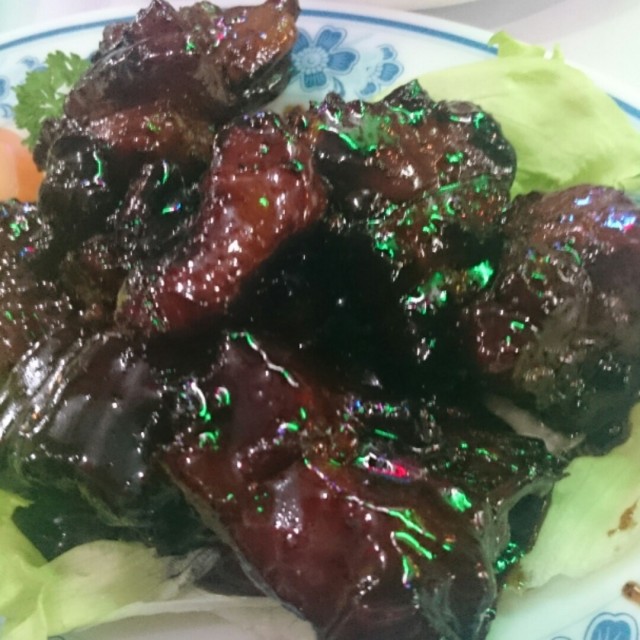 It is located right opposite Tiong Bahru Market. It is an old school Chinese restaurant that has been in operation since 1996(if I am not mistaken as you can see the title putted as 1996). If you google online, you can find many review, those who commented disappointingly mainly said the standard dropped a lot. For me as a 1st timer, I feel it is consider quite a good experience, i just have to avoid ordering certain food for my next visit. We spent $164.20 for 9 of us.Signature Homemade Toufu($20++), when I heard about the signature toufu, my impression was a big slice of fried toufu with the fried mince meat on top. I was wrong when it was served like below. The toufu tasted silky smooth yet firm and the gravy is nice. They used some mixed vegetables and I even saw sea cucumber in the dish, so kind of worry will it be very expensive? The sea cucumber tasted totally not nice, soft and there was a weird taste when I ate it.Seafood Roll($16++), something like fried prawn paste, not much taste seafood. I don't like itYam Basket($24++), I love yam so I love anything that made with yam. The yam basket here is good, it is fried well so tasted cripsy and yet inside is soft. It was filled with fried chicken, prawn and mixed vegetables.The champagne pork ribs($27++), available as a short rib (from $18, main picture) or long rib ($8 per piece) variation is a house specialty here. The fork-tender meat coated in a thick, caramelized dark brown sauce tasted with very nice smokey flavour which I like it a lot. Butter Cereal Prawn($33++) which is highly recommended by the staff, said that it is the best and signature of the restaurant. I generally like the butter prawn very much because I like the egg floss with butter and smell is just so fragrant. Por Kee version tasted good(not the best), but I did not really taste any cereal, so it is more towards butter prawn version.http://rainfooddiary.blogspot.sg/2013/07/por-kee-eating-house.html…查看更多