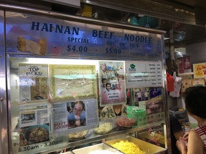 I visited on a Saturday around 12pm, just half an hour after they opened and the queue had started to grow!Most of the customers were getting it to go and they have about 4 staff all busy, doing different tasks. The old lady at the front takes the order, she was friendly and most of the bottle neck was from the old man having to scoop up the soup and meat. For $4 you get 10 beef balls.. I was happy with that! The meat tasted good and the sauce was yummy too! However the soup was too sweet for my liking. I think they must have added some sugar to it, despite them boiling soup for extended periods. Would I be back? Only if I'm in the area but there's also a lot more food in this same hawker centre that might entice me to come back and at the same time grab some beef noodles!…查看更多