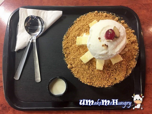 With Bingsu craze coming into Singapore for the past 1 year, I have always wanted to give them a try and it was such a coincidence that my pal who lives in the East side wanted to give it a try as much as I do.Since it was a weekend, we chope a seat before placing the orders. I made the choice of ordering Cheesecake Bingsu to share between us and never have the slightest regret about such decision!I was stunned by its pleasant surprise, the scoop of vanilla ice cream is sitting on spongy cheesecake cubes and beneath them all we could see was a generous portion of crushed digestive biscuits.A small container with milk was given as a topping to the Bingsu but I guess the trick over here is not to directly pour all at a go without eating some of them up to prevent overflowing. Portion is big and definitely more than enough for 2 ladies.…查看更多