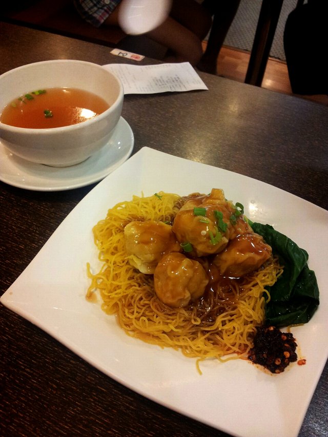 Whenever there is such restaurant or cafe that named themselves Hong Kong something, I am always looking forward to some nice Hong Kong food even though it is not those authentic ones but at least the taste must be good. Moreover, it is always long queue. So the anticipation is even higher.So for dinner, we ordered Shrimp Wonton Noodles dry, Prawn Paste Chicken and Sliced Tender Beef with Crispy Noodles. Plus my drink, Lemon Ribena.First, Prawn Paste Chicken. This is one of the popular one which I think almost every table has a plate. It comes with 3 pieces at a price of $6.80. The aroma of the chicken can be smelt from far. It is crispy on the outside and tender on the inside. With every bite, the smell purge out and along with oil. It is actually quite oily and not juicy. Some may mistaken it as its juiciness but it is not. It actually looks dry on the outside but never know the inside is quite oily.Next, the crispy noodles that is topped with sliced beef. I love crispy noodles especially when they have sauce that we can mix and blend with the noodles. And the noodles will eventually soften. You still taste the crispiness. But the sauce is a little salty. And I can't deny that the beef are tender but it is not properly cooked. I can taste the bits of rawness. I'm not having steak now so I'm talking about cooked beef and not medium done or medium raw type. Lastly the shrimp wonton noodles. It comes with a soup that is not very tasty. But the wontons are big and prawns within are nice, fresh and springy. But the taste of the overall is average. Nothing to rave about. As compared to the food centres, it is rather expensive and not worth to have wonton noodles here.Next time round, I will come for their desserts instead.…查看更多