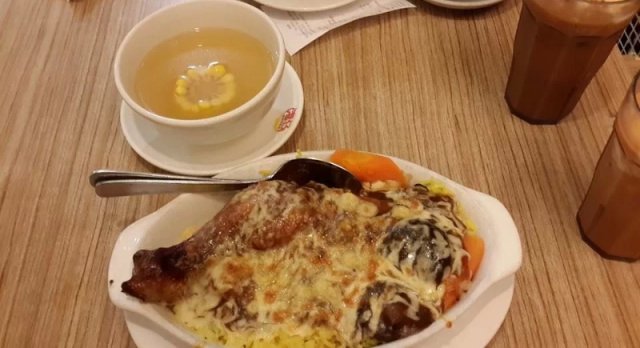 I like the pork chop baked rice from wan chai. The pork chop is not too dry and tough, in fact it is very tender and juicy. I like the sauce they coat the pork chop with, has this sweetish taste. The rice is very fragrant, not the normal rice we eat. What I like most about this dish is the melted cheese on top of the baked rice. they are very generous with the cheese, every spoon you take, there is some cheese sticking together with the rice.…查看更多