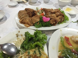 the chye sim salted vegetables were nice & it was easier to pick up the fish meat c/w the dry version but both version had their own attractiveness. the crayfish was a competent dish, tasty. i still preferred the ah orh style though as i felt the sauce masked the sweetness & flavour of the crayfish.the prawn balls & ngoh hiang was another average, ok dish.teochew plain fried char kuay teow was good, had wok hae, though not my favourite. i liked chui huay lim’s seafood beehoon better.the orh nee was very average, not “pang”. the ones we had recently at much cheaper muliangzai liang kee was better.overall we had 9 dishes for 9pax costing $297nett=S$33pax. perhaps slightly more expensive c/w with the S$268 10pax set menu (above). price was ok, the food was average to above average. i was not overly impressed but it is a place i would come again for fairly good quality food at ok prices.…查看更多
