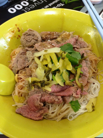 It was the after lunch hour and also an half day for the office people before the public holiday. I was craving for beef noodles but many hawkers were seen packing up while some are already closed for business. Then i chanced upon this stall where there isnt a queue at all and the uncle is still cooking. Ordered a bowl of goodness and it was only $3!! The soup was heavenly too. The meatballs are handmade.The auntie is very friendly and asked to take a seat first and have a drink first as the cooking will take awhile. Would love to have this anytime of the day again!…查看更多