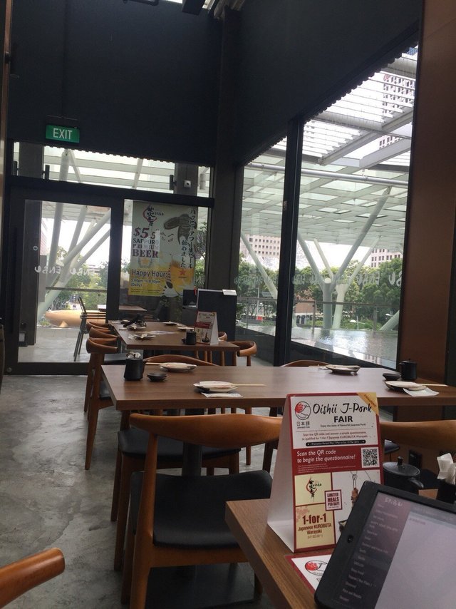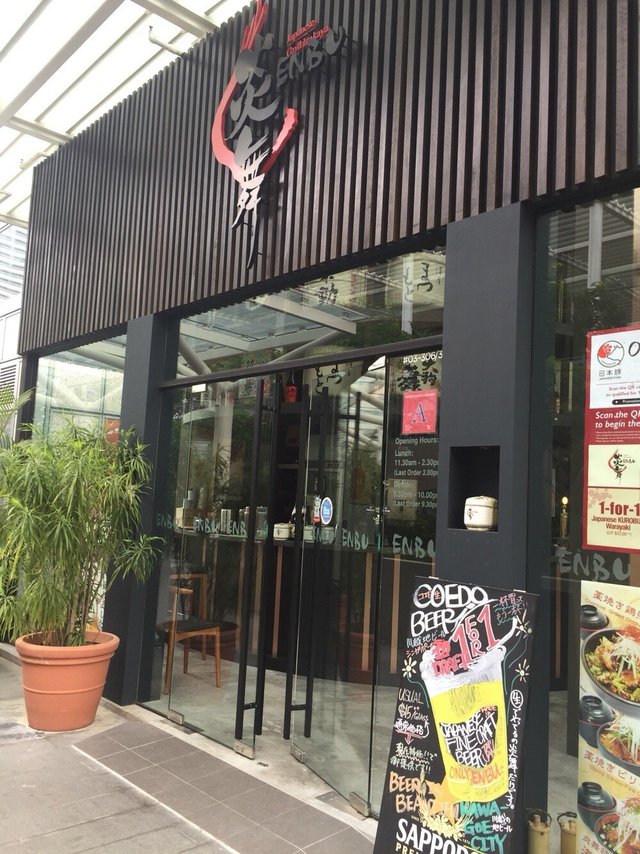 Eat At Seven is a brand new concept in the recently revamped Suntec City Mall. It houses seven different Japanese dining concepts under one roof at the Sky Garden area of Suntec City Mall. The first to open restaurant is ENBU, which is opened by Customers Delight Co., Ltd. and TOMO group. The restaurant offers Warayaki-Ya style Izakaya cuisine. The restaurant overlooks the pond and has a nice view of the sky garden. The place was decorated in black tones, with a well stocked bar. There was no hardcopy of menu. Order was taken through iPad and submitted by oneself.Jikasei Tsukune Don ($17.50++)Enbu Homemade Minced Chicken Patty Grilled with Teriyaki Sauce, Approximately waiting time is 10-15 minutes.Currently there was a 1 for 1 promotion using JCB credit card until 30 April 2016. The rice dish was served with a bowl of miso soup. I like that the egg yolk broke easily and flowed out smoothly, which added an additional smoothness of coating to the juicy chicken patty. Although the chicken patty was grilled with teriyaki sauce, the sauce was not as sweet as I thought it would be.Aburi Salmon Sushi ($15++)Torched Salmon Pressed Sushi with MayonnaiseWhen the dish was served, I was surprised by the huge chunk of rice. It was covered with a rich layer of creamy sauce on top. Tasted quite sinfully rich.Overall the food was delicious, although there was a bit too much rice. Service was great too with the staffs checking on us and updating us on the promotions available. The place was cooling and quiet with a nice view of the relaxing outside.…查看更多