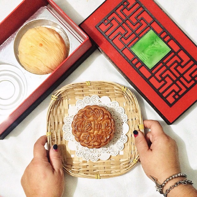 Baked mooncake with premium mother of pearl white lotus & single yolk