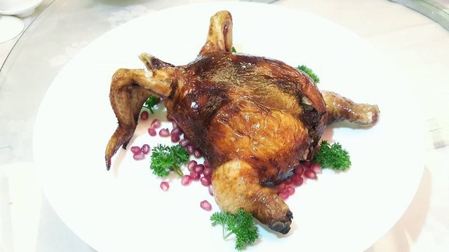 Roasted Crispy Chicken stuffed with Glutinous Rice and preserved meats 腊味脆皮糥米鸡