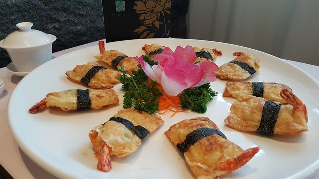 Deep-fried Phoenix Prawn with Cheese encased in Crispy Beancurd Skin 脆炸芝丝凤尾明虾
