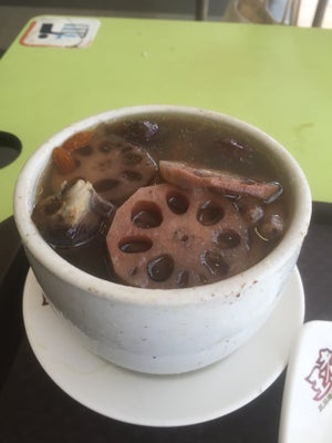 Had the chicken rice again. It's so good and wholesome and the whole lot in the photo cost $9.80. No GST or service charge! For 2 people! Yay! This is so super good. Fresh roasted chicken, fragrant rice, great chilli and sauces and breat herbal soup! And wonderful vegetables! What more can you ask for? It is too perfect! There are other things on the menu but we just end up eating the same thing over and over because it is just so good. No oiliness or greasiness. It looks and tastes much better than any other hawker or "well-known" chicken rice! Seriously, this taste homecooked and made with care! Oh, except for the occassional dirt in the vegetables... But at least the vegetables are not limpy and oily like at the hawker centres...…查看更多