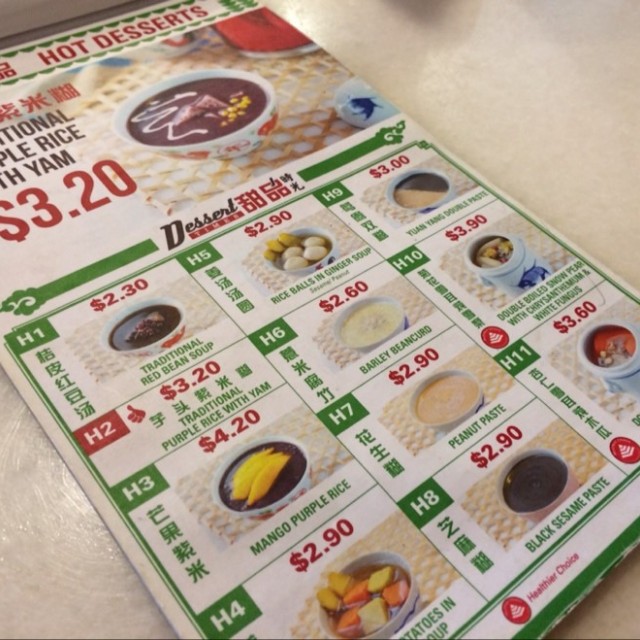 Came across this newly opened dessert store at Changi Village. You won't miss it, the decor is rather eye catching. They sell traditional desserts like sesame paste, and also mango pomelo sago, etc. I got the durian pomelo ($5), but was rather disappointed, as it wasn't puree but watery, with lumps of ice and durian scattered around, wouldn't recommend this. I got my mum the purple rice with yam ($3.20); only had one piece of yam, and it's average pulot hitam (?) but there was corn in it.…查看更多