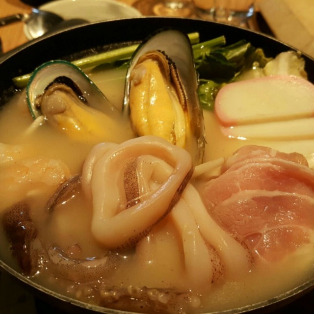 The restaurant is located in the middle along the stretch of various restaurants. The restaurant is quite open but decorated in a rather dark traditional looking way. Although it is quite open, but there is a number of fans around, so it is quite cooling dining in.Broiled Salmon Sashimi Served on Your Table ($12)The sashimi is touched upon on the table. Exciting performance by the staff, although we are more worry for him as he has too many things on his hands. Smooth and buttery in texture.Shirokiya Specialty 'Chiritori Hot Pot' ($38.80/ 2pax)Chicken, Pork, Beef and Vegetable Served in Spicy beef stockThe hot pot is said to have originated from Sukiyaki in Osaka. The stainless steel pot looks like a dust pan (Chiritori in Japanese), that's why it is named Chiritori Hot Pot.Although it is hotpot, we do not have stirred the pot, just let it simmers.Until it fully cooked. Do takes note of the thin sliced beef. As we let it simmers until the vegetable soft, the beef becomes overcooked and a bit tough and dry in texture. The vegetable soaks up the flavours, soften and gives abit of soup, although I wish there could be more soup.Overall the meal is not bad. I have a bit of problem in the billing part. Seem that the staff do not know how to process JCB card although it is accepted at the restaurant. One of the staff even asks me for password. Seem that they do not even know which machine is to be used for processing the payment. But all turns out fine when a more senior staff takes over the billing.Read More