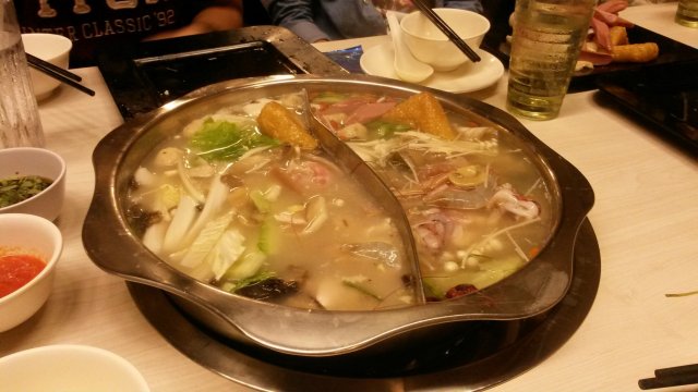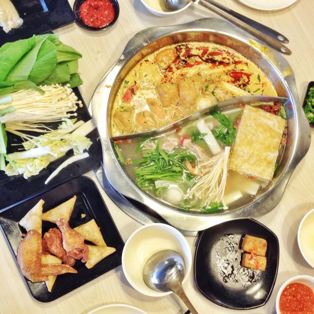 We order for the herbal soup and seafood soup as we don't eat spicy stuff.. And my friend from the next table order the ma lan soup and the seafood soup. The price for one person is about S$25.I do not like the herbal soup because it was rather bland. The seafood was good to me. The order was on the paper and we have to pass up it to the waiter/waitress however they ignore us quite a lot and we miss some of the orders. There was fried stuff that we can order too.Lastly, the mango pudding was great. …查看更多