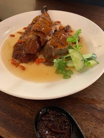 【新加坡中區】【福勁】被新加坡朋友知道咗我做 foodie 之後,大家對於飲食都有種無名嘅壓力,而紓解壓力嘅方法當然係享受美食。嚟到個名好有趣嘅餐廳 Fook Kin 試吓係咪真係咁好食。入到去就被佢哋嘅氛圍同埋裝修所吸引,就算嘢飲隻杯都一樣咁別出心裁,好期待啲食物。先試 S$29 嘅「Char Siew」同 S$28 嘅「Roast Pork」,兩者都係 300g 嘅中 size。前者係整得好焦香而濃郁蜜糖味嘅叉燒,後者係燒到皮脆肉嫩嘅燒肉。兩款肉類嘅口感同層次都相當分明,啱啱好,唔會過老或者過嫩,有啲香港嘅餐廳都未必做到呢個水準。跟住試兩款炭火燒鴨,兩款都要 boneless 嘅去骨版。S$22 嘅「Charcoal Roast Duck 1/4 Lower」即係下莊,加埋「Sweet Sour Plum Sauce」即係酸梅醬就夠晒惹味喇。而「Charcoal Roast Duck 1/4 Upper」嘅上莊位就收 S$18,呢碟點「Dang Gui Sauce」。佢係一個當歸味嘅醬,當歸味唔會影響到燒鴨嘅味道,正。之後試 S$11.3 嘅「Kang Kong」,揀咗 Sambal Fried 就變咗勁辣嘅通菜,嗜辣嘅朋友啱晒。五穀類有 S$10.8 嘅「Seafood Curry Mama」,係一個好香濃嘅咖哩麵,麵底就揀咗 Mama Mee,好有趣。另外加 S$3 可以有多碗「Mince meatee Pok」,係 with Chili 嘅,朋友都話好食同埋抵食。嘢飲朋友飲 S$3 嘅「Ice Tea」,我飲 S$7 嘅「Ice Tea with Sorbet Lychee」,差唔多嘅嘢,都幾好飲,只係我個杯多粒荔枝雪葩,飲到最後好似多咗荔枝飲品咁。食食吓由於個菜對我嚟講有啲辣,就試多款飲品,叫咗 S$4.6 嘅「Passion Fruit Soda」,正正常常嘅熱情果梳打一杯。價錢係 S$163.9,喺呢個地段嚟講,三個人食晚飯唔算貴。同埋佢哋有侍應識廣東話,溝通完全冇問題,令餐飯嘅氣氛更加溫情洋溢。。。(地址:111 Killiney Rd, Singapore, 239550)@fook.kin#1amfoodie #foodie #love #eat #1am新加坡 #新加坡 #fookkinsg #福勁 #新加坡美食 #FookKin #福劲 #SeafoodCurryMama #CharSiew #叉燒 #RoastPork #燒肉 #CharcoalRoastDuck #燒鴨 #KangKong #MincemeateePok #IceTea #PassionFruitsoda #1am1329 #1ambackup…查看更多