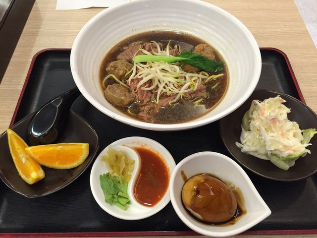Went to have our lunch at Hock Lam Beef. My hubby ordered a angus beef set meal ($15.90) which consists of a serving of braised Australian Angus beef paired with beef flavoured rice ($2.50), braised egg, firm tofu & completed with a serving of fruits. The beef is pretty good. Tender, juicy & flavourful. The little braised egg & tofu is really nice, soft & delicate. Very appettizing when eaten with rice & paired with the thick salty braised sauce.The rice on the other hand is cooked with beef broth for the extra beef flavour.I had beef noodles ($9.90) instead. I choose yellow mee (or kway teow / thick mee hoon) with beefballs & ribeye slices in herbal broth. You can choose beef tendon, brisket slices or even mixed beef depending on your preferences. The broth is very flavourful as it is stewed overnight in 13 herbs & ingredients. I love the tender ribeye slices & slightly chewy soft beefballs very much. I add on $2 to have a braised egg, a serving of fruits, salad & a drink which I think is quite worth it. Overall, we think the food is pretty decent & reasonably priced. However, the variety is very limited so I guess we may not return for dinning again.…查看更多