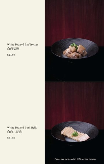 原湯 / 雞肉蘑菇湯 / 蒸或炸鱈魚 / 白煨豬蹄