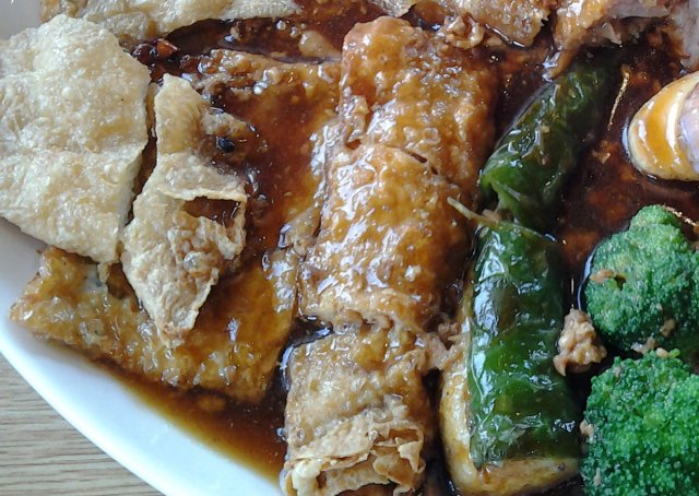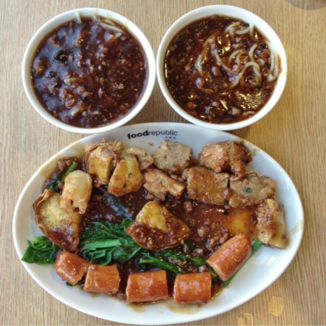 The stall serves YongTauFoo with a special brown gravy with minced pork. The gravy has a slight sweetness in it and it goes well with the noodles and the YongTauFoo.A set comes with noodles in the gravy and six pieces, costs $5.30. The YongTauFu are all fresh and good though nothing much fantastic