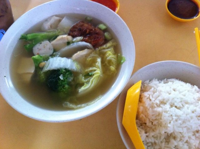 Actually I am not frequently having my lunch at Jurong area, I was brought by my colleague to this hawker. Yong Tau Foo stall did catch my attention, lengthy queue yet patrons were willing to wait. Ladyboss was quite young, all their food prepared were freshly made. To keep the things simple, I was given an empty plate to pick whatever thing I wanted to eat.Opted for decent soupy meehoon, I took lady fingers, fried tofu and assorted veggies. The boss was using soy bean to cook their soup, that’s why naturally syrupy flavourful. I used to have my bowl with a small plate of darkening sweet sauce, it enlightened the taste. Only $2.50 as I had 5 pieces of stuffs, the price was reasonably acceptable. …查看更多