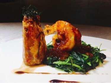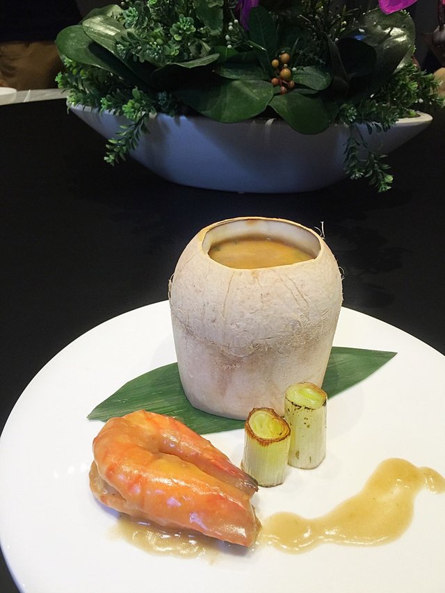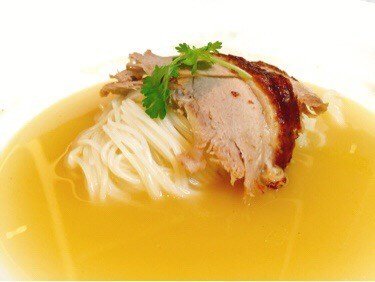 King Prawn, Silken Longevity noodles served in Coconut Crustacean Broth